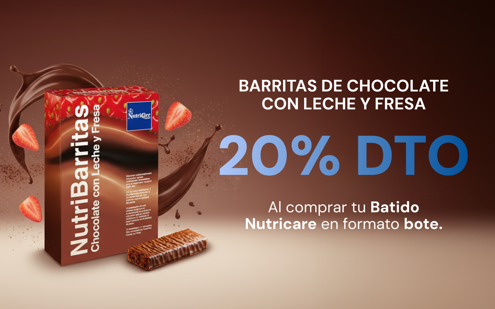 Compra cualquiera de nuestros NutriBatidos de formato bote y combínalos con nuestro Snack más vendido con un 20% de DTO.
